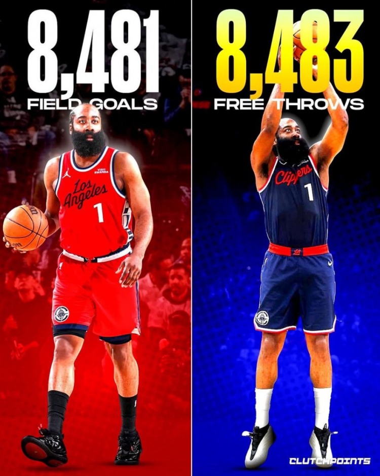 🤯哈登生涯至今罚进8483球 比投篮命中总数还多两球