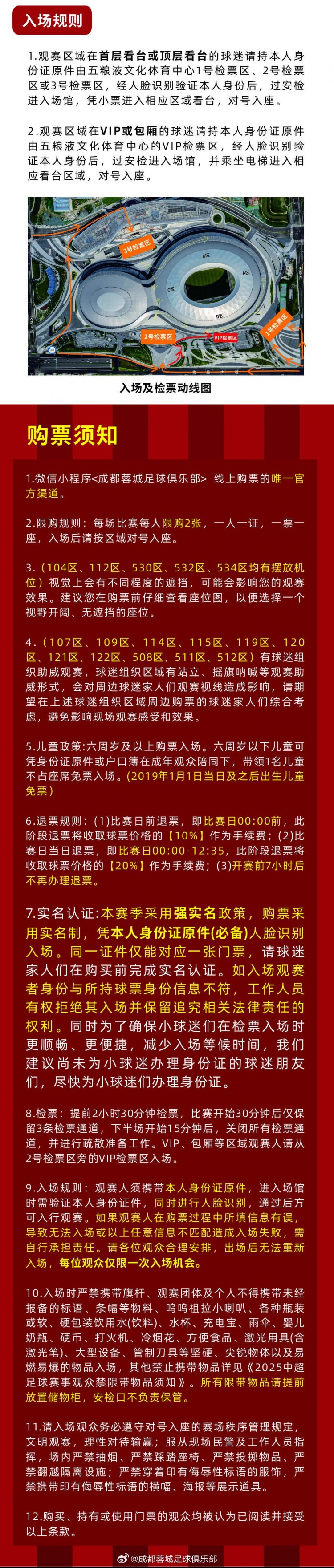 今日14:00,成都蓉城vs河南俱乐部酒祖杜康主场比赛球票线上开售,请各位球迷家人定好闹钟!线上购票相关购买须知、优惠群体政策、进场及检票方式等信息请通过图片详情了解